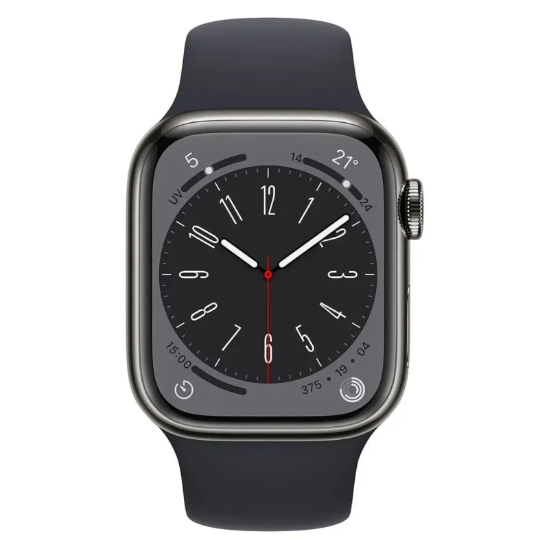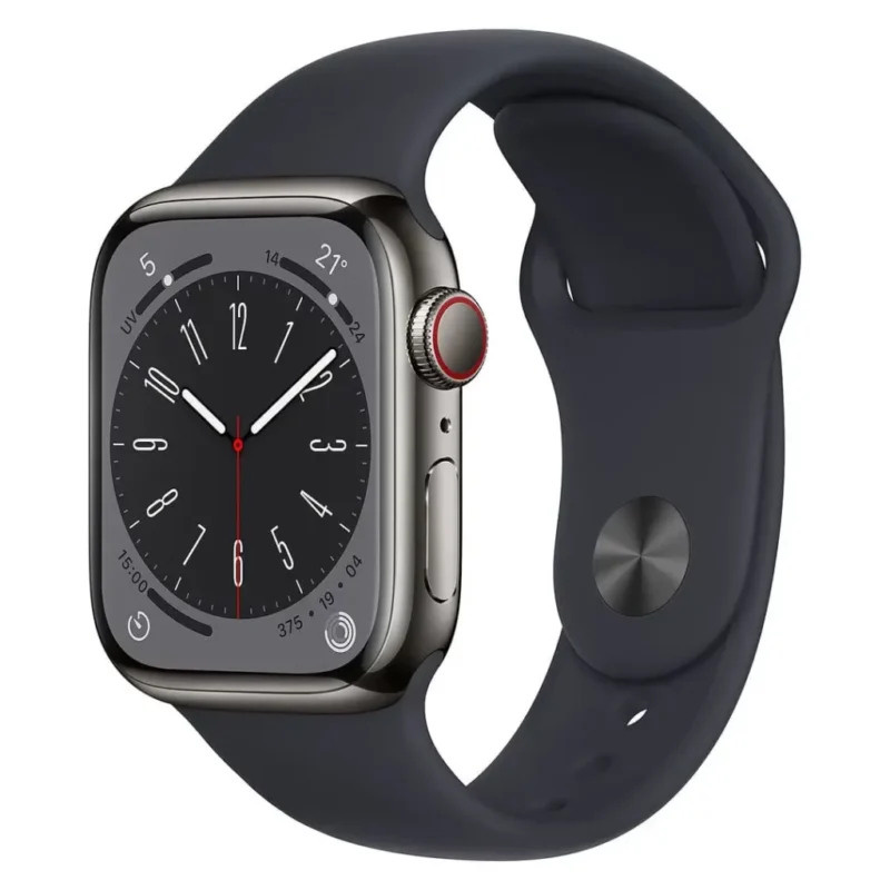 Apple Watch Series 8 GPS + Cellular 41mm Graphite Stainless Steel Case with Midnight Sport Band – Regular