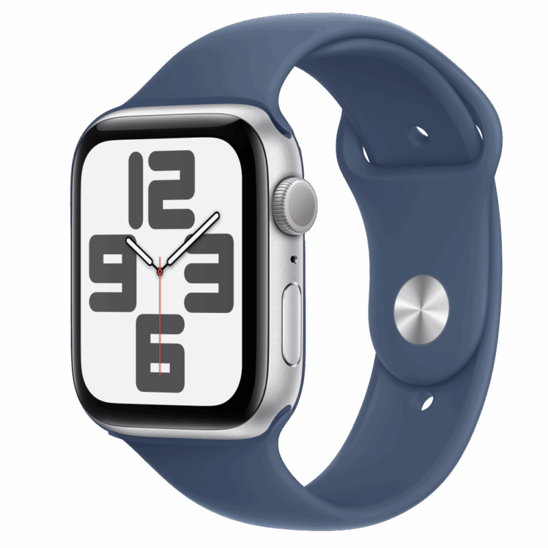 Apple Watch SE2 v3 GPS 44mm Silver Alu Case with Denim Sport Band – M/L